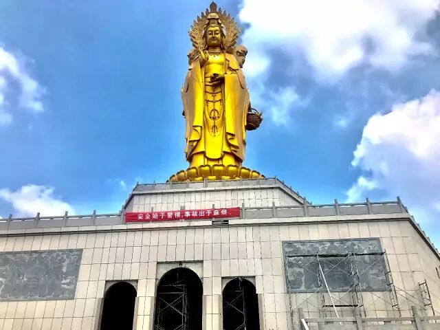 海王禪寺的三面觀音像,在頻臨黃海的三寶聖地,高高地聳入雲端,為蘇北一座最高的地標性佛像景觀。