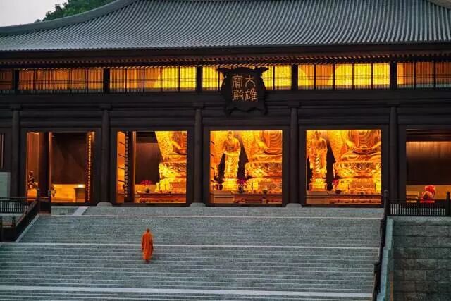 據說用料十分講究,木材採用非洲進口的紫檀木,大雄寶殿三尊佛像的