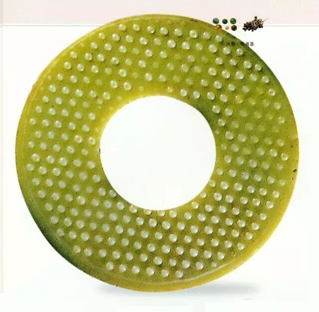 扁平體,中有一圓孔,表面飾以穀紋。