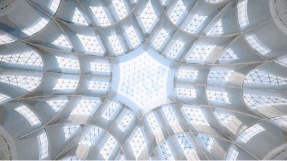 如此龐大的屋蓋僅用了8 根C 形柱作支撐