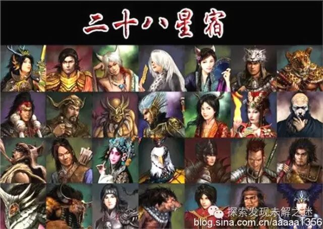 鬼金羊、柳土獐、星日馬、張月鹿、翼火蛇、軫水蚓。