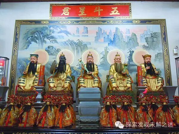 五方謁諦金光揭諦、銀頭揭諦、波羅揭諦、波羅僧揭諦、摩訶揭諦 五耪婢東方歲星木德真君|南方熒惑火德真君|西方太白金德真君|北方辰星水德真君|中央鎮星土德真君 五嶽 東岳泰山天齊仁聖大帝 南嶽衡山司天昭聖大帝 中嶽嵩山中天崇聖大帝 北岳恆山安天玄聖大帝 西嶽華山金天願聖大帝 (五嶽帝君:東岳帝君,名金虹氏,東華帝君弟。其它四岳帝君為東華帝君的四個兒子。)及碧霞 君 五斗星君東斗星君|西斗星君|中斗星君|南斗星君|北斗星君 六丁六甲六丁為陰神玉女:丁卯神司馬卿|丁已神崔巨卿|丁未神石叔通|丁酉神臧文公|丁亥神張文通|丁丑神趙子玉
