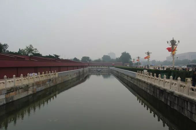 於是天安門前就出現了一條長數百米, 寬10多米的護城河,河上架設了七