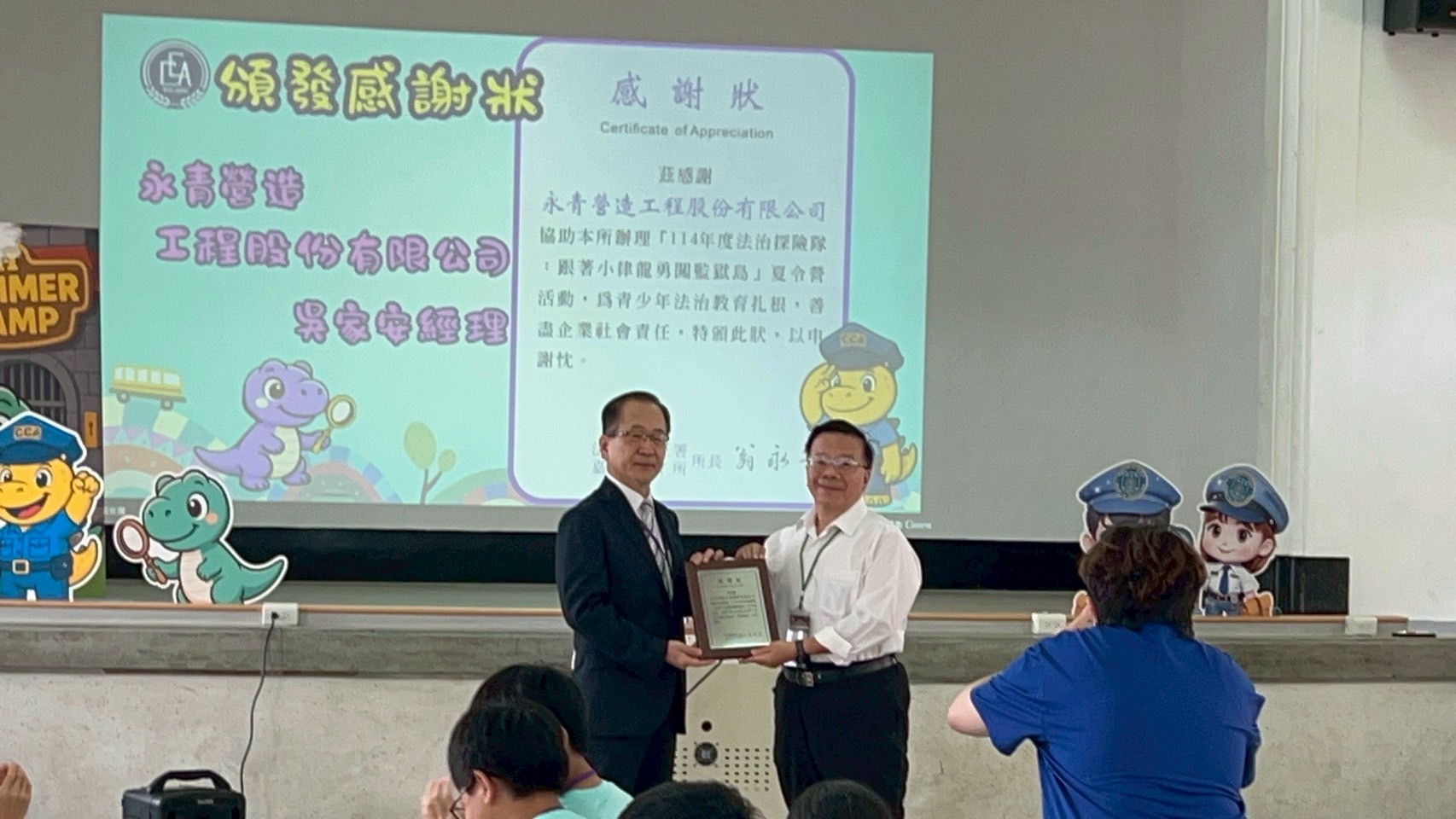 活動中特別頒發感謝狀給永青營造工程股份有限公司及大銪股份有限公司,感謝該公司重視CSR企業社會責任,關注青少年法治教育;夏令營就在來賓與學員們一起跳結合「逮捕術接手法」的破冰律動舞蹈中熱鬧開訓,在熱血節奏中認識矯正人員的執勤勤基本技巧,青春洋溢、肢體全開。