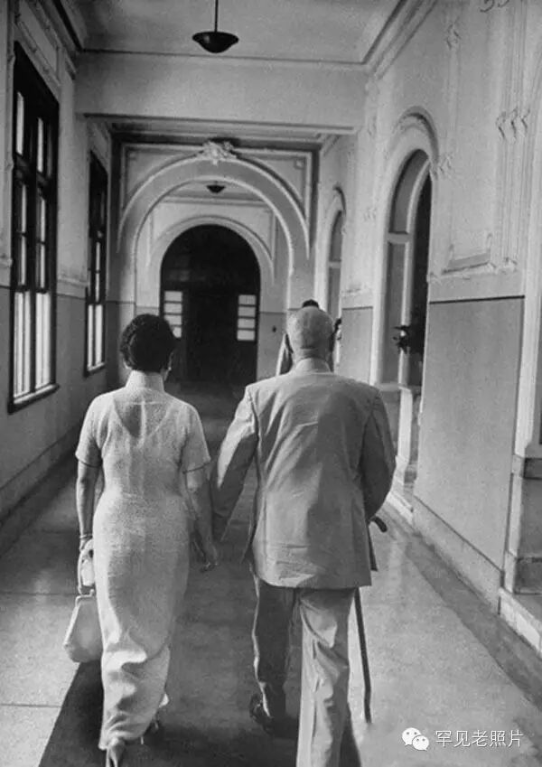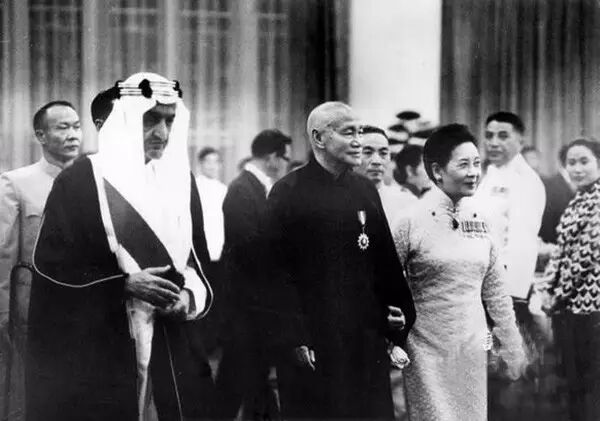 1957年,蔣介石和宋美齡歡迎日本首相岸信介訪問台灣,蔣時年70歲