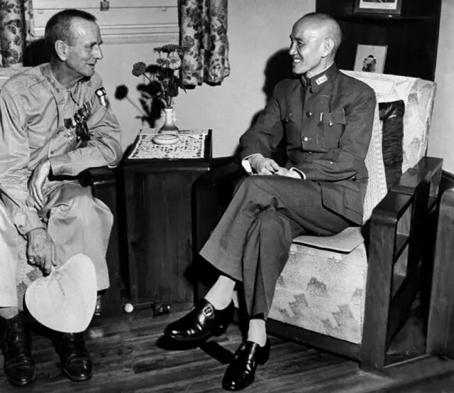 1947年5月16日,蔣介石任命陳誠(左)為參謀總長,周至柔(右)為空軍總司令