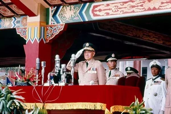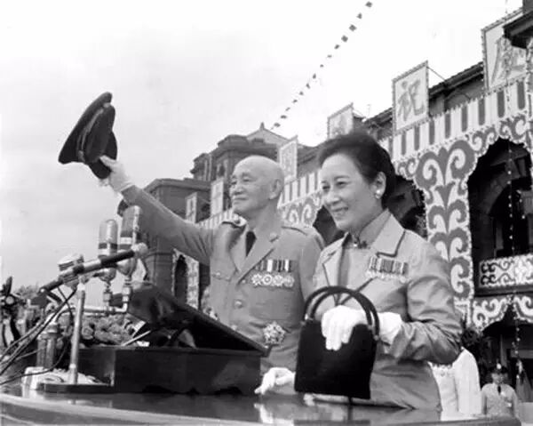 1971年雙十國慶,蔣介石夫婦在總統府前接受群眾歡呼,這也是宋美齡罕見的戎裝照。
