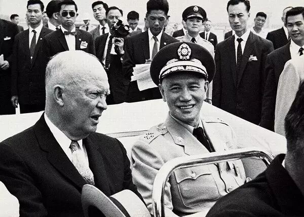 1960年6月18日,美國總統艾森豪威爾訪台,蔣介石親迎於台北松山機場時二人