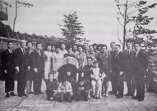 1970年10月14日,蔣介石夫婦在中興賓館陽台與家屬、親友歡聚。蔣介石時年83歲。
