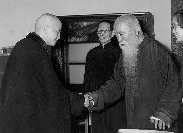 1927年10月18日,蔣介石第一次下野後東渡日本,與頭山滿合影。頭山滿,