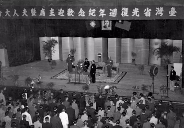 1946年10月25日,蔣介石在台北主持台灣省光復週年紀念大會,此時的老蔣