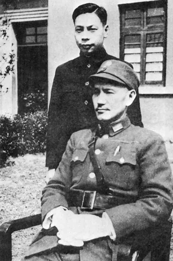 1940年3月,蔣經國赴重慶向蔣介石報告贛南施政狀況與蔣留影。