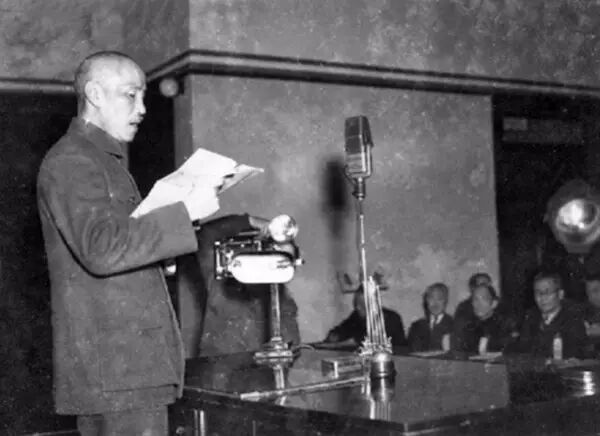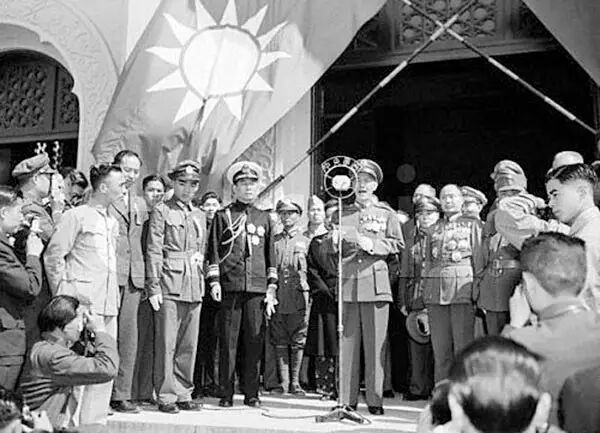 1945年8月15日,蔣介石在南京中山陵前,透過電台向全國人民宣布對日抗戰勝利。