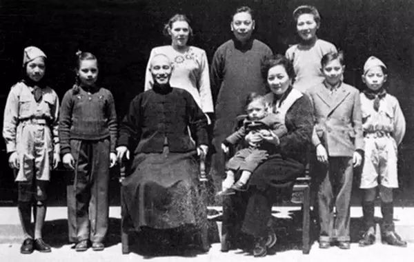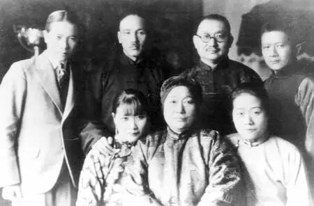 前排右一是大姊宋靄齡,中間是宋母倪桂珍,後排右一是弟弟宋子安,右二是大姊