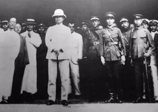 1924年6月16日,黃埔軍校開學典禮上的孫中山與蔣介石,蔣被任命為黃埔軍校校長,