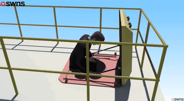 當遇到火災或其他災害時,只要打開“井口”,站在這塊液壓式逃生電梯上,