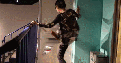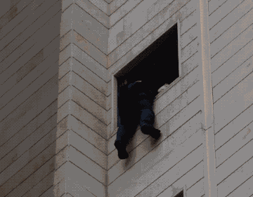 接著就可以從窗外,順著牆壁爬下樓啦,有點像玩室內攀岩的感覺。