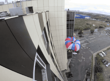接著就像降落傘一樣慢慢飄下,看著好像還挺舒服。