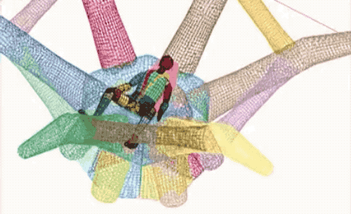 當人穿過滑梯時,用手腳對滑梯施加壓力,這時彈簧就會裹住人體,從而起