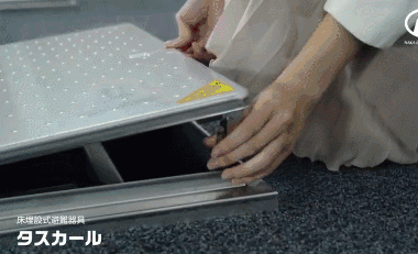 操作起來很簡單,只需打開這個方形蓋子,踩下通道口上的按鈕,梯子就會