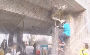 為了普及各個年齡段的居民們熟練使用逃生梯,日本很多小區都會定期舉行