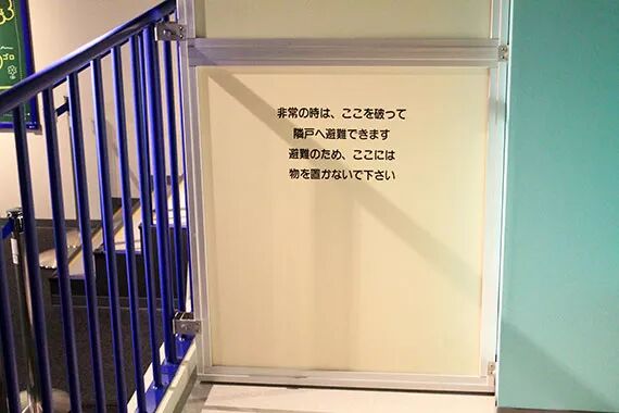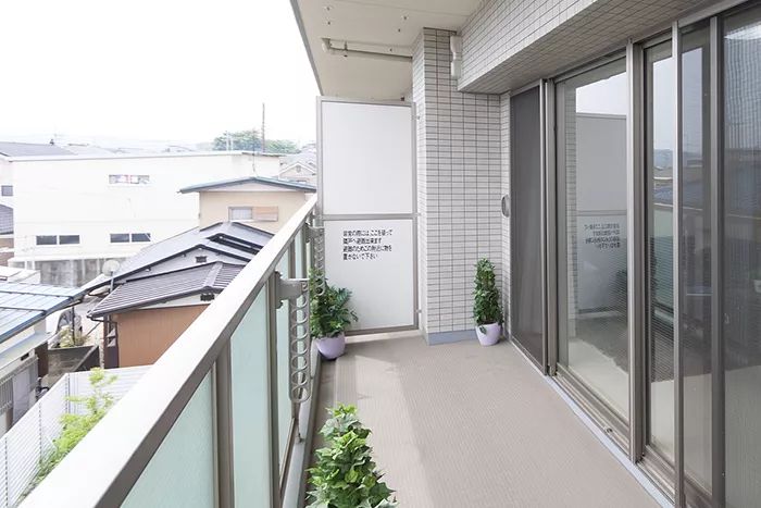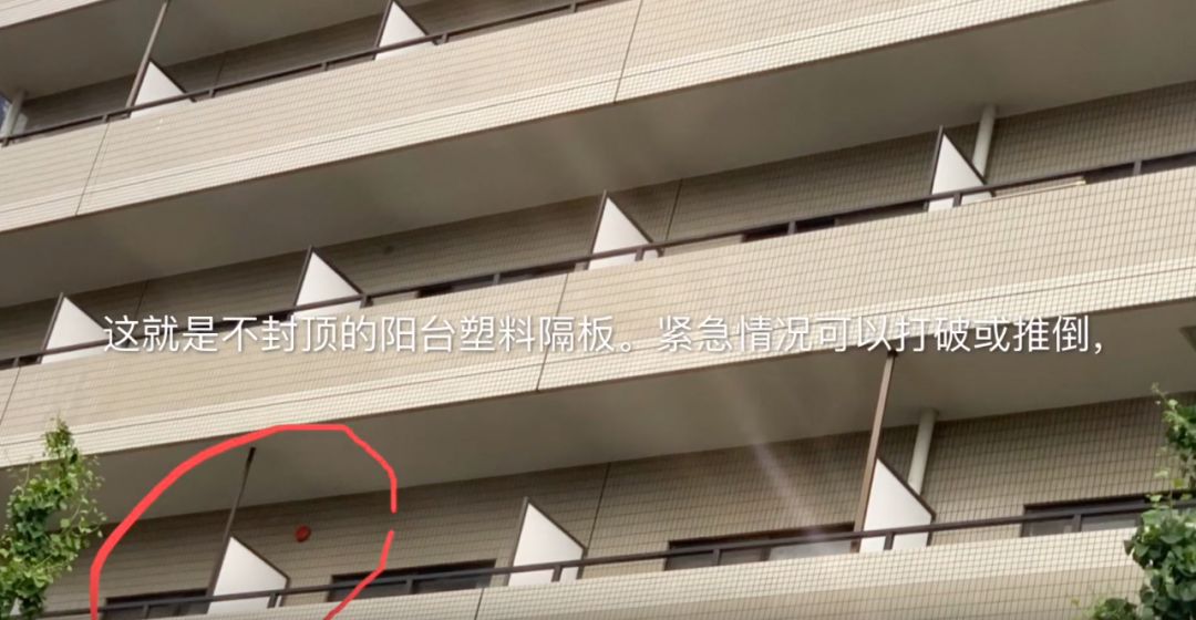 日本居民樓的陽台,鄰里之間會有一個區域是用一層較薄的塑料板隔著的。