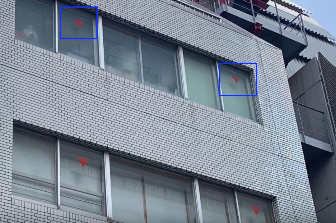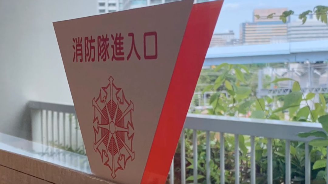 每層都至少有一扇玻璃窗上貼有紅色倒三角的標記,這是乾嘛用的呢?