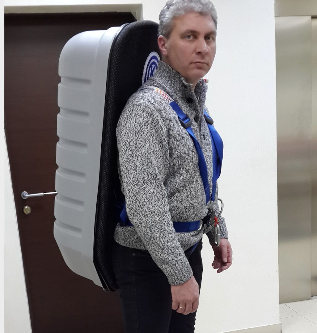 不用擔心重心不穩突然掉下樓,背包內配有重力感應裝置會根據人的體重