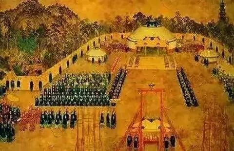 三品大臣官員在丹陛甬路,四品以下有職官員在丹墀左右,其餘拜唐阿、護