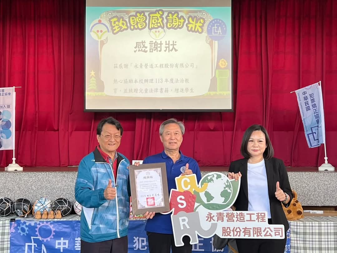 永信國小校長吳博明特別感謝中華民國犯罪矯正協會的精心安排,以及永青營造工程股份有限公司的熱情贊助🏗️,使學校得以推廣法治教育,創造學生更多成長機會。✨