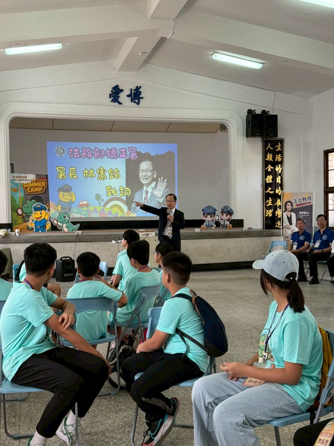 嘉義百年舊監獄,今年夏天成了孩子們最愛的「法治冒險樂園」!由中華民國犯罪矯正協會及嘉義看守所主辦、永青營造工程股份有限公司共同協辦的114年度暑期夏令營《法治探險隊:跟著小律龍勇闖監獄島!》,8月9日於國定古蹟嘉義舊監獄熱鬧展開,56位五年級至八年級孩子組成法治探險隊,展開一場結合法律與矯正職場體驗的沉浸式任務!法務部矯正署署長林憲銘也親自蒞臨,期盼法治教育從小扎根,更期許兒童及青少年認識高牆內矯正人員的職場日常!