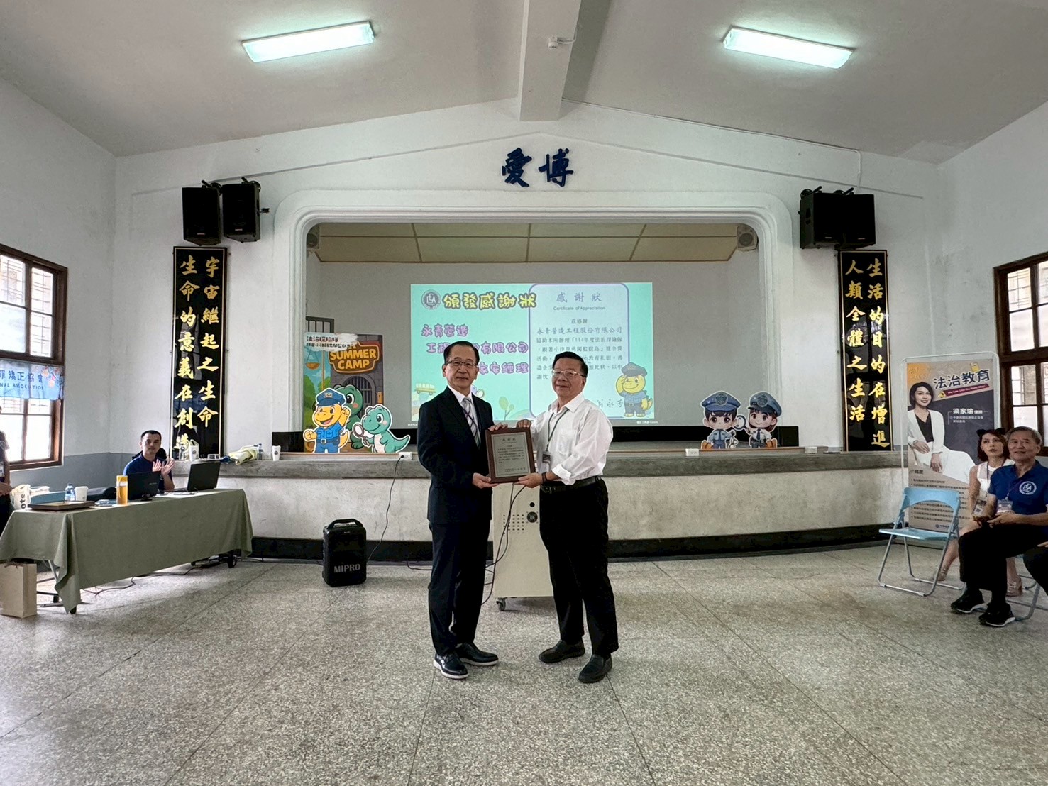 活動中特別頒發感謝狀給永青營造工程股份有限公司及大銪股份有限公司,感謝該公司重視CSR企業社會責任,關注青少年法治教育;夏令營就在來賓與學員們一起跳結合「逮捕術接手法」的破冰律動舞蹈中熱鬧開訓,在熱血節奏中認識矯正人員的執勤勤基本技巧,青春洋溢、肢體全開。